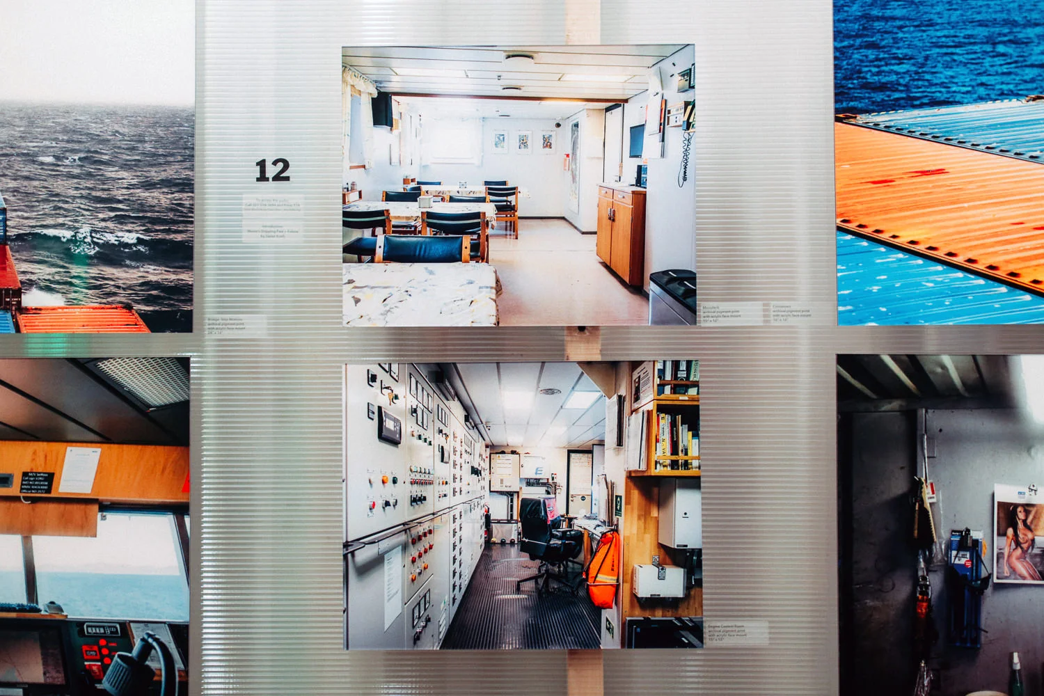 Audio prompts were punctuated throughout the left wall among images of the ship's material culture and daily happenings. These audio stories provided an examination of Maine's shipping past and future and were included to provide a broader context to the State's emerging relationship the North Atlantic region. Recorded + produced by Galen Koch in collaboration with Justin Levesque.